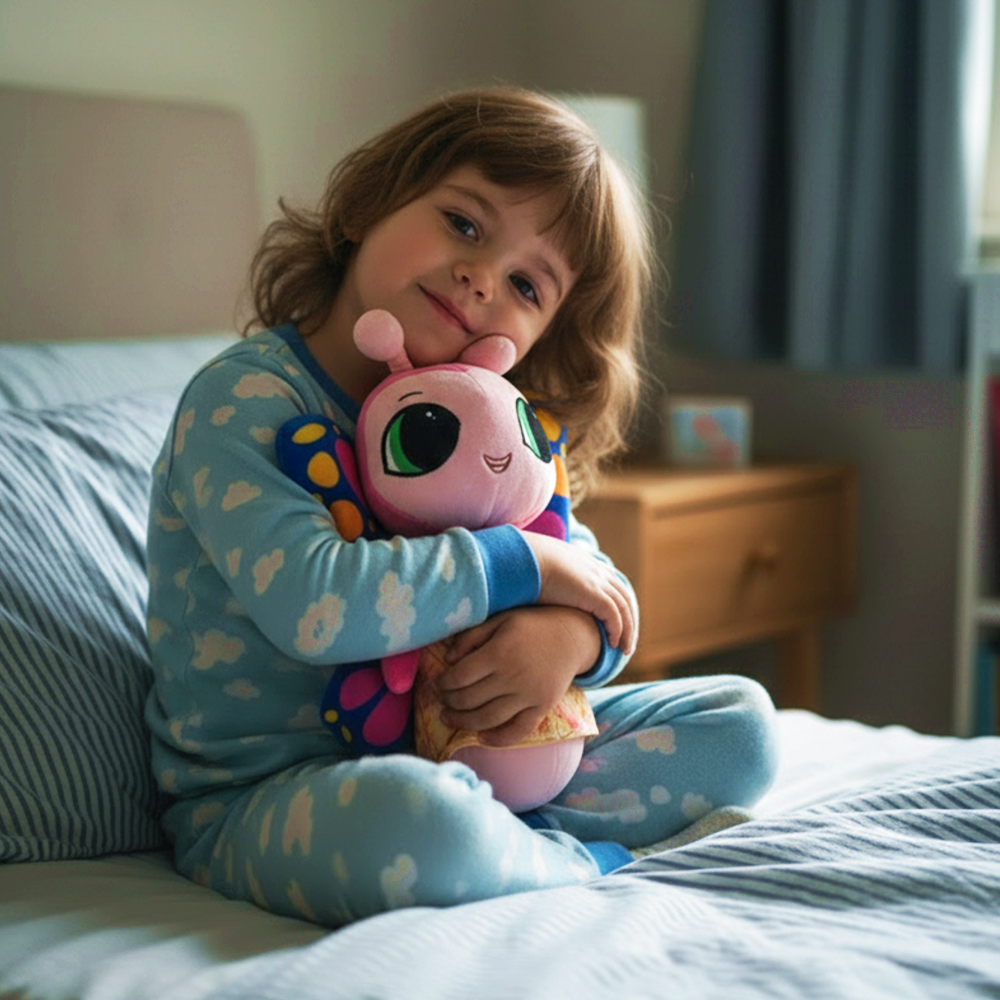We’re a snug little family of eight irresistibly cute plush Humm Buggs, each tucked into our favorite cozy pajamas. We’re soft, cuddly BFFs who love to hum sweet lullabies just for you. Each of us have our own special song—and a softly glowing face that shines with warm, bedtime magic, making dreams feel closer than ever.